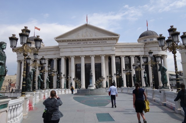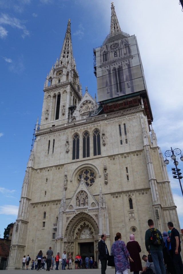 Auf dem Platz vor dem Dom ist eine ganze Reihe von Ständen aufgebaut, die verschiedene Nationen vertreten und in der Mitte ist eine kleine Bühne aufgebaut. Wie wir erfahren, findet heute ein EU-Tag statt, an dem die Mitgliedstaaten jeweils ihr Land vorstellen. Außerdem wird über das Studium im Ausland informiert… in einem der Länder, durch die wir gefahren sind, ein Auslandssemester zu machen, klingt für uns immer reizvoller! Von Werbegeschenken überhäuft machen wir uns weiter, jedoch nicht ohne uns mit dem griechischen Botschafter in Zagreb zu unterhalten, der den griechischen Stand betreut.