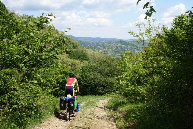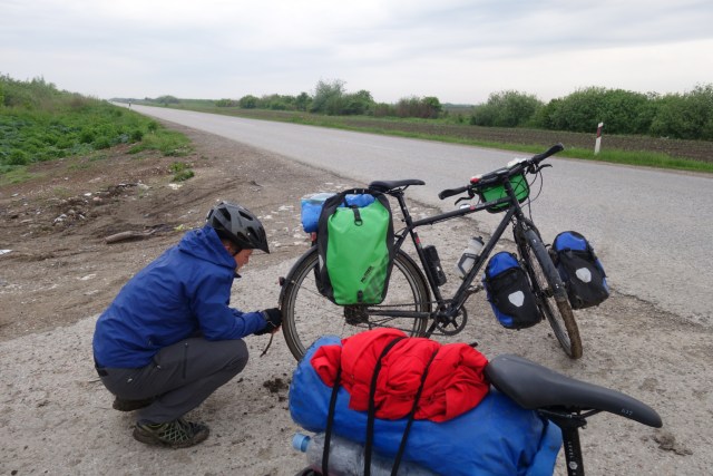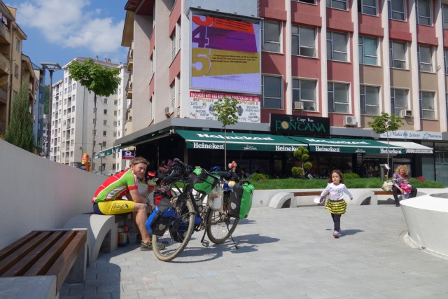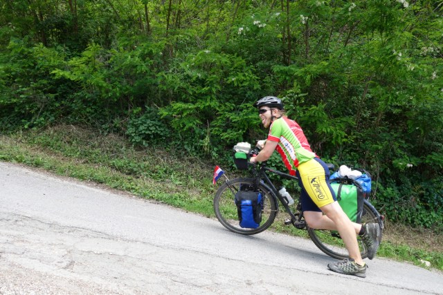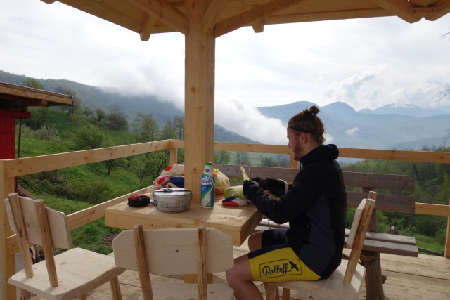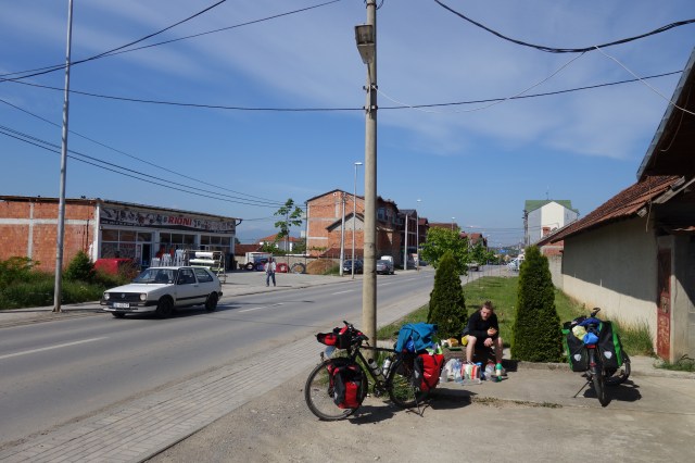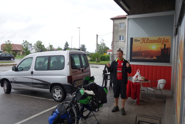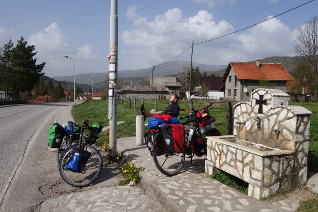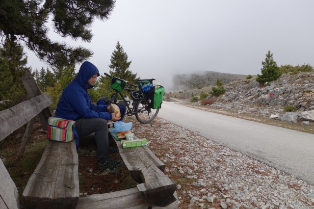 Nachdem wir uns mit genügend Kalorien für die zweite Tageshälfte befüllt haben, geht es an den Strand zur Toilette. Dort treffen wir auf einen Österreicher, der mit dem Motorrad unterwegs ist und uns erzählt, er sei früher ebenfalls mit dem Rad durch Südosteuropa gefahren. Doch nun würde er das motorisierte Zweirad doch einem Fahrrad vorziehen, da es nun mehr seinem Alter entspräche. Wir müssen kurz wieder an den 73-jährigen Amerikaner denken, den wir vor zwei Tagen in Slowenien getroffen haben.