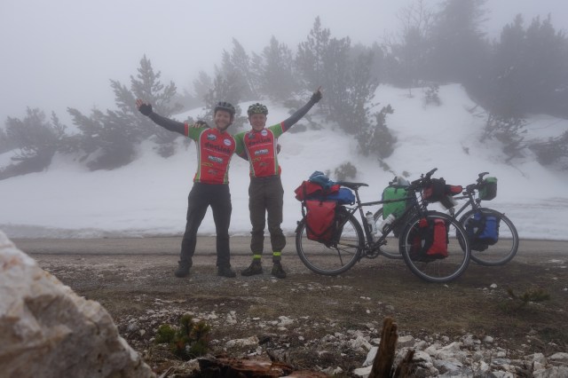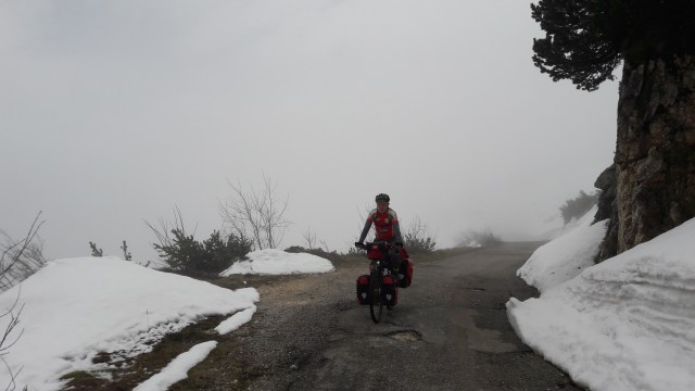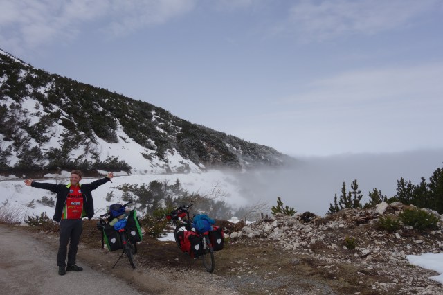 Oben angekommen sind wir tatsächlich noch mitten im Schnee.