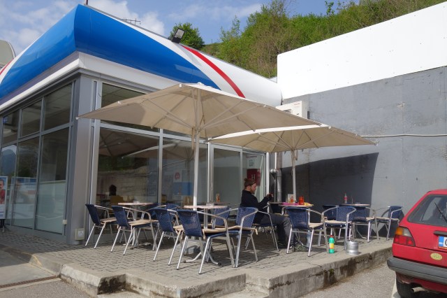 Um die Mittagszeit wollen wir uns dann im nächsten Ort nach etwas Essbarem umschauen, doch der dortige Supermarkt scheint pleite gegangen zu sein und am Strand ist bis auf ein paar Fast-Food Buden noch alles geschlossen. Also haben wir keine andere Wahl, als mit knurrendem Magen 10km bis zum nächsten Ort zu fahren und dort auf eine bessere Versorgung zu hoffen. Und tatsächlich, wir werden fündig bei einem Mini-Supermarkt mit Stühlen und Tischen vor der Tür!