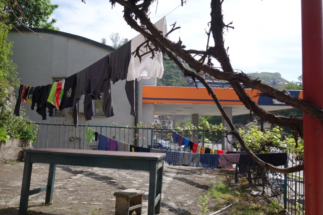 Während Leon schon den zweiten Tag in Folge jede freie Minute zum lesen nutzt (das Lesefieber hat ihn nach sechs Wochen ohne jegliche Buchstaben endgültig unaufhaltsam gepackt), unterhält sich Vincent noch kurz mit der Miklos Frau, die ihm mit Kaffee und Honig den Morgen versüßt. Dann verabschieden wir uns von der Familie und fahren zum Supermarkt, um Frühstück zu besorgen.