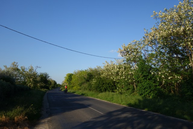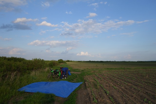 Weiter führt uns der Weg am See entlang, bis wir schließlich nach schon fast 100 Tageskilometern das Ende des Plattensee erreichen. Nun heißt es Abschied vom Balaton, doch angesichts eines Abends mit weniger Stechmücken fällt unser diese Verabschiedung nicht allzu schwer. Wir fahren noch eine gute Stunde in den Abend hinein und genießen das warme Licht der tief stehenden Sonne. Diese Nacht wollen wir wieder mal unser Zelt in der Natur aufschlagen, doch das gestaltet sich auf den zweiten Blick als gar nicht so einfach. Denn die Landschaft um uns herum ist bis auf den letzten Quadratmeter hocheffizient bewirtschaftet und wir könne bis zum Horizont kein brachliegendes Feld ausmachen.