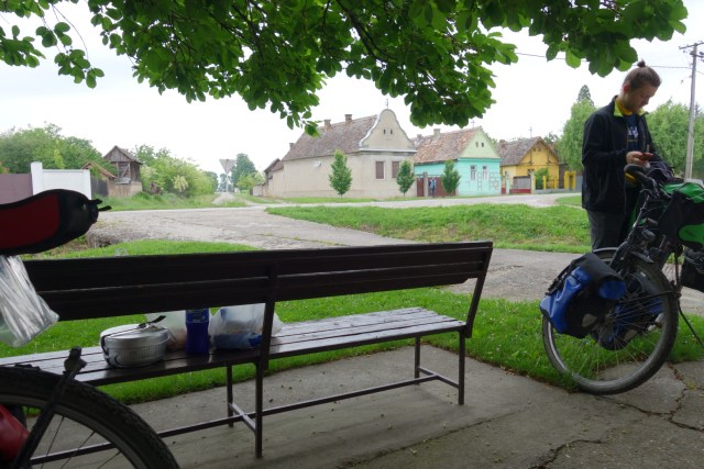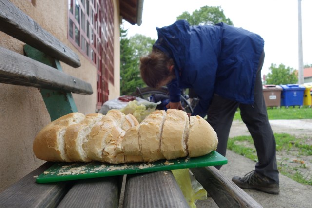 Dienstag: Über Nacht sind etliche Ameisen und andere Insekten über unsere Fahrradtaschen geklettert und haben auch irgendwie den Weg zu der Tüte mit dem restlichen Gemüse gefunden… es dauert eine Weile, die komplette Tasche auszuräumen und alles Gekrabbel abzupflücken. Alles zusammengepackt stellen wir freudig fest, dass wir für heute eine Zusage bei warmshowers bekommem haben. Direkt am vorderen Ende des Plattensees (Balaton) – nicht ganz 70 Kilometer für den heutigen Tag. Also treten wir bei allerschönstem Sonnenschein ordentlich in die Pedale.