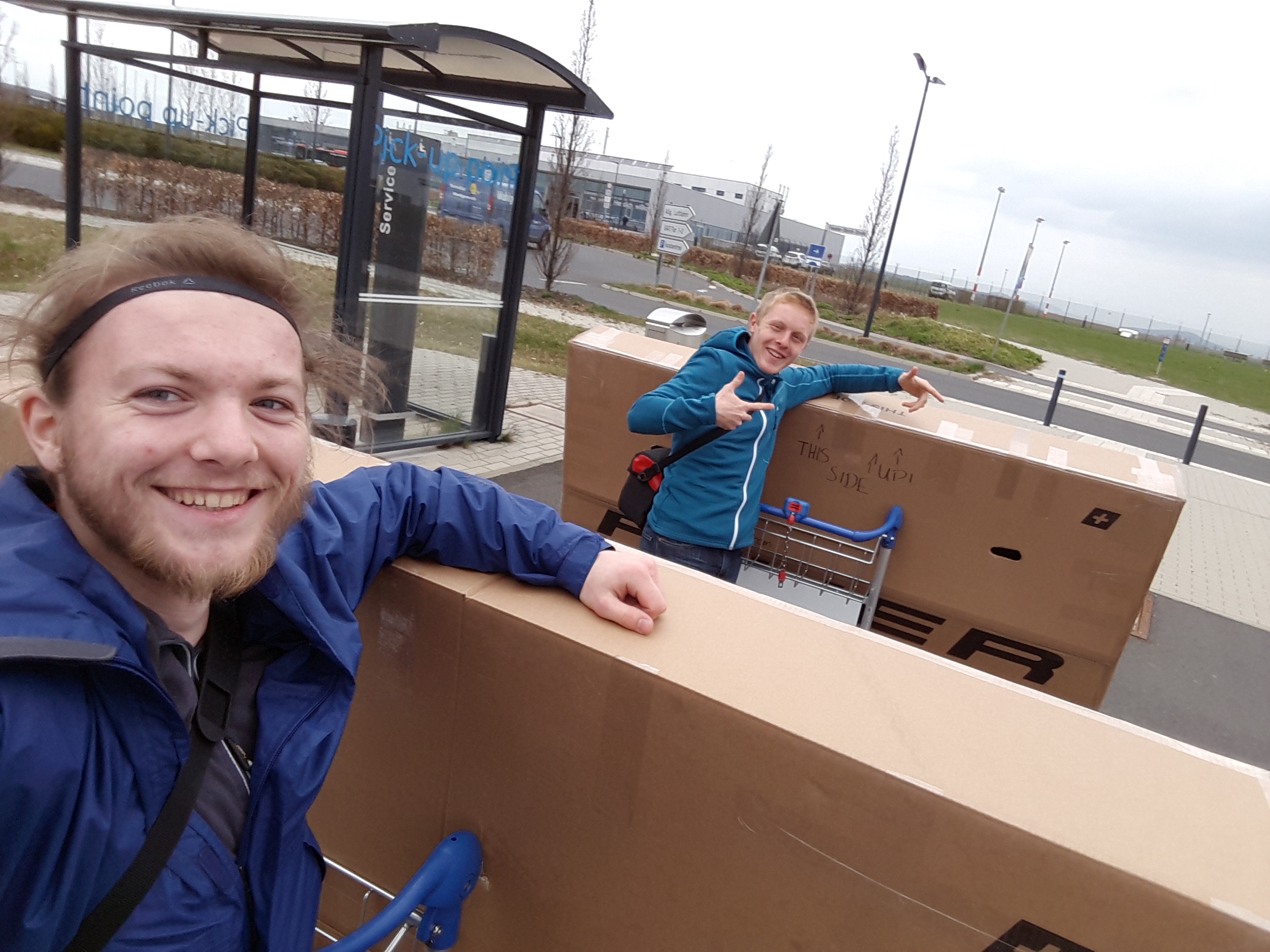 In bester Laune auf dem Parkplatz vom Kassel Airport! Die Räder auf den Karren und ab geht die Post!