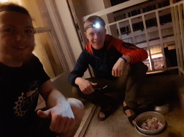 Den Abend lassen wir gemütlich ausklingen, indem wir schonmal ein bisschen Fahrradtourfeeling verbreiten. Auf dem Balkon von unserem Hotelzimmer packen wir den Campingkocher aus und kochen Wildreis mit einer schmackhaften Gemüsesoße.. noch in der Luxusvariante 😉