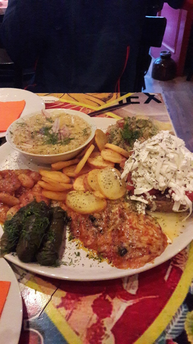 Um den letzten Abend würdig ausklingen zu lassen, setzen wir uns in ein kleines Lokal, in dem wir eine Menge grichischer Spezialitäten aufgetischt bekommen – sogar ganz ohne Fleisch! Danach geht es wieder ins Hotel, packen und letzte Vorbereitungen treffen…