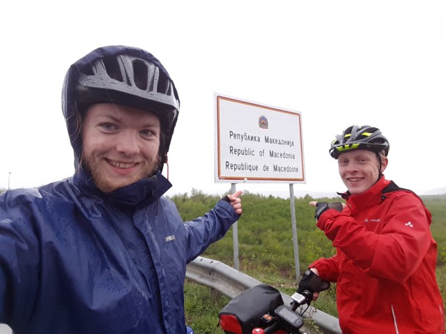 Nach einer sehr schönen Abfahrt, für die wir noch zwei Jacken extra angezogen haben, befinden wir uns in einem kleinen Örtchen nicht weit von Gostivar und genießen das bisschen Sonne, was durch die Wolken dringt. Von hier aus haben wir morgen noch ungefähr 70 bis 80 Kilometer bis nach Skopje, wo wir den zweiten Pausentag einlegen wollen. Also sparsames Programm, weshalb wir uns nach einer Übernachtungsmöglichkeit umschauen. Direkt neben uns steht ein sehr schick aussehendes Hotel direkt an der Straße. Vincent fragt kurzerhand nach, in der Erwartung, wegen zu teurer Zimmer weiterfahren zu müssen. Wir kommen jedoch für umgerechnet 20 Euro in einem sehr luxuriösen Doppelzimmer unter und haben sogar eine eigene Dusche! Wir hätten zwar gerne irgendwo das Zelt aufgeschlagen, doch um zu vermeiden, richtig krank zu werden, siegt heute die Vernunft. (Wir hören in Gedanken schon das erleichterte Aufseufzen unserer Eltern.)