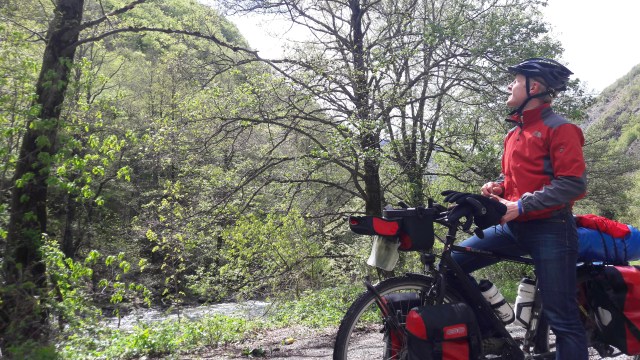 Die Schneebedeckten Berge schüren in uns die Erwartung, dass wir heute noch einen Schneemann bauen können. Daran haben wir in Griechenland, bei teilweise über 30 Grad in der Sonne, noch nicht gedacht. Wir fahren kontinuierlich leicht bergauf, doch immer eine gut asphaltierte Straße entlang. Links und rechts von uns heben sich die Berge immer weiter, doch wir fahren immer an einem Fluss hinauf. Schon sind wir im Mavrovo-Nationalpark angelangt!