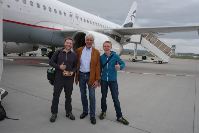 Begleitet von unseren Familien und Freunden (viele Grüße an den Lars 😀 ) checken wir am Flughafen ein und geben unser Sondergepäck ab – auch hierfür danken wir, und zwar dem Kassel Airport, welcher die Kosten dafür getragen hat!