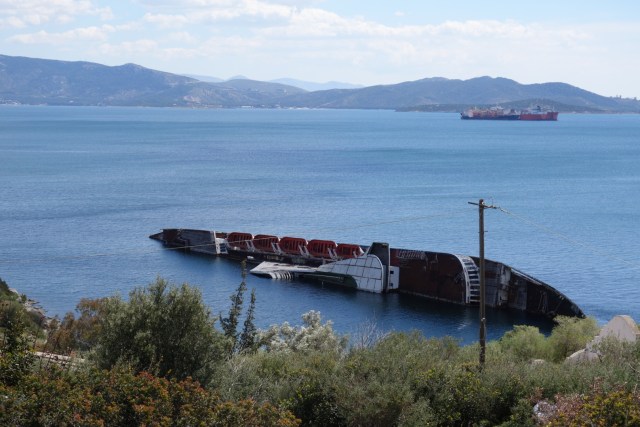 Ein gekenterter Frachter, dem sich wohl niemand annehmen wollte.