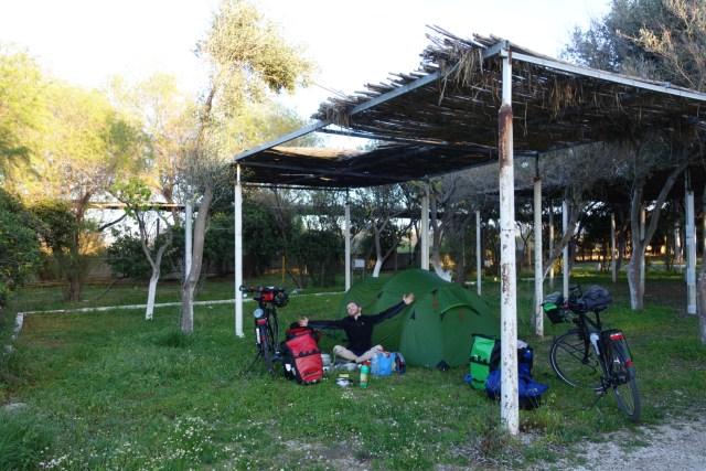 Der zweite Tag unseres Trips startet auf dem Campingplatz kurz hinter Korinth. Wir hatten uns vorgenommen um 8 Uhr wohl genährt den schönen Fleck zu verlassen und in die Pedale zu treten.