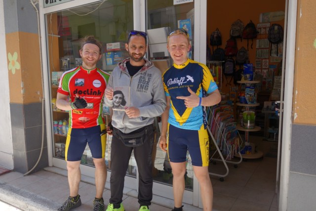 In einer kleinen Seitengasse werden wir dann auf der Insel tatsächlich noch fündig und treffen auf einen sehr netten Mann eines Schreibwarenladens. Auf die Frage, ob er das Buch kenne antwortet er selbstverständlich mit ja und will uns nach dem gemeinsamen Foto sogar noch etwas als Dank mitgeben. Doch wir geben ihm etwas verwirrt von der Gastfreundschaft zu verstehen, dass wir zu danken haben und verabschieden uns fröhlich.