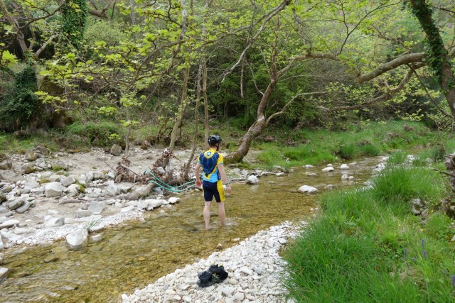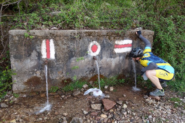 An einem Bach mit glasklarem Wasser erfrischen wir uns kurz, dann geht es weiter den Berg hinauf.