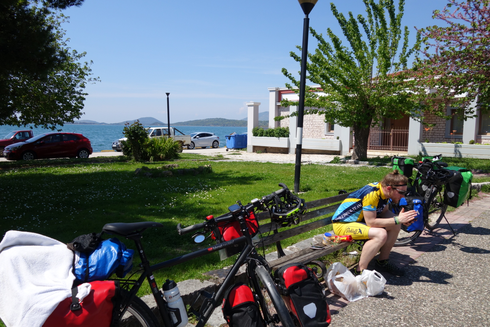 Nach der ersten Mahlzeit des Tages fahren wir die Küste entlang nach Etoliko. Das Wetter spielt wie die letzten Tage wieder bestens mit und es ist sehr angenehm im Trikot und kurzer Hose zu fahren.