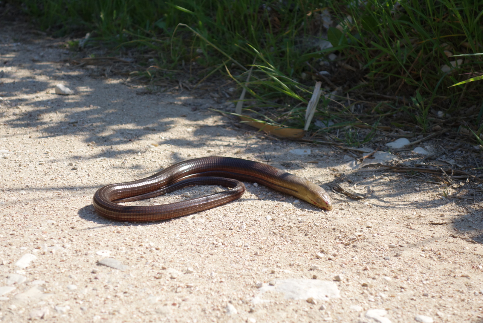 Nach einer ausgiebigen Pause machen wir uns weiter durch viel bewirtschaftete Felder voll mit Orangen-, Zitronen- und Olivenbäumen. Unterwegs treffen wir auf eine noch lebende Schlange am Rande der Fahrbahn, werden kurz darauf aber leider Zeuge davon, wie ein vorbeifahrender LKW sie gnadenlos überrollt. Nun gehört sie zu einem der vielen Kadaver, die wir immer wieder am Straßenrand sehen.