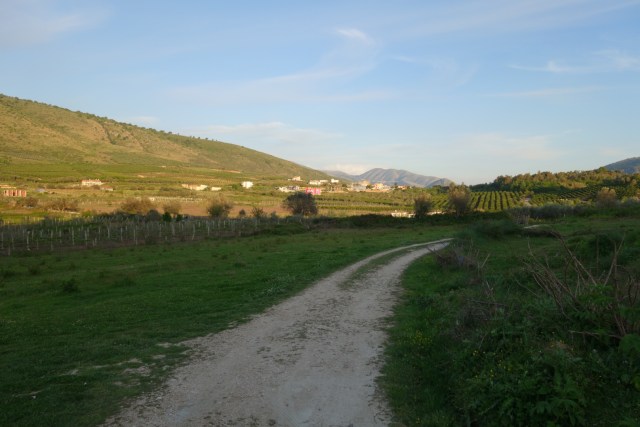 Noch gut 50 Kilometer trennen uns jetzt von Tirana. Das ist auf jeden Fall machbar. Unsere Beine sind von den Strapazen etwas müde, doch wir haben uns für den morgigen Tag vorgenommen, richtig zu entspannen und Energie zu tanken. Also heißt es: ab aufs Rad und weiter gehts. Kurz vor der Küstenstadt Durrës biegen wir von der Küste ins Landesinnere ab, wo uns ein heftiger landschaftlicher Wandel erwarten wird. Hier heißt es nun etwas wehmütig Abschied nehmen vom Meer und vom milden Frühlingsklima, das uns die letzten neun Tage durchweg begleitet hat. Ordentlich steil fahren wir einen Hügel hinauf, von wo uns noch ein letzter Blick auf das Meer vergönnt ist.
