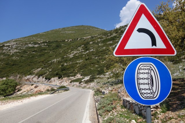 Schneekettenpflicht auf der Passstraße, anscheinend kann es hier im Winter auch ordentlich kalt werden.